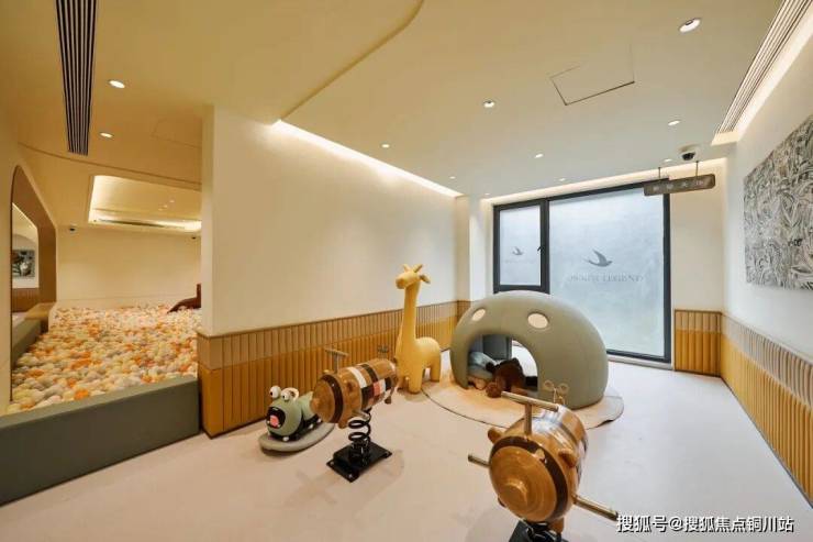 招商序小高层6号楼架空层,以艺术空间为主,配有茶室、书法区、艺术展区;7号楼架空层,打造了企业家会客厅,是总裁日常接待会客的地方。11号楼架空层,是儿童主题空间,内部配有植物主题区、海洋球滑梯。