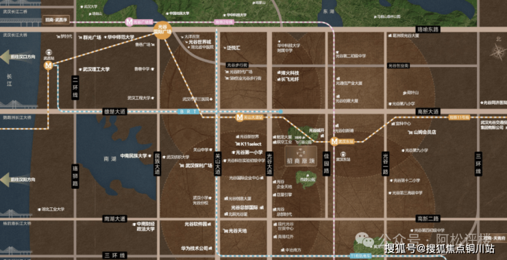直线距离约3公里内,包含了华中科技大学等诸多高等院校,不仅为片区打下浓厚的人文烙印,更为光谷乃至武汉提供了源源不断的人才输出。