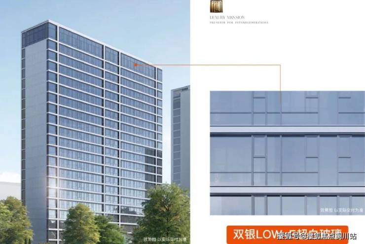 以公建化立面设计为例,尊御府从选材上慎重考量,选用效果更好造价更高的双银LOW-E超白玻璃。这种玻璃具有保温隔热、防尘清洁、牢固性强等优势,可将大量的远红外热辐射反射回去,有效减少室内紫外线;且相对普通中空镀膜玻璃,冬季能减少热量损失,夏季能减少热量透过,减少空调能耗,节能效果显著。