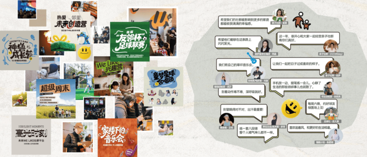 社群:主理人 + IP 矩阵,已孵化亲子、运动、音乐、手工、文化等主题社群14个,每个月都能开展常态化活动12-16场,形成“月月有主题,周周有活动”的社群氛围,以兴趣为纽带,重建有温度的熟人社区。
