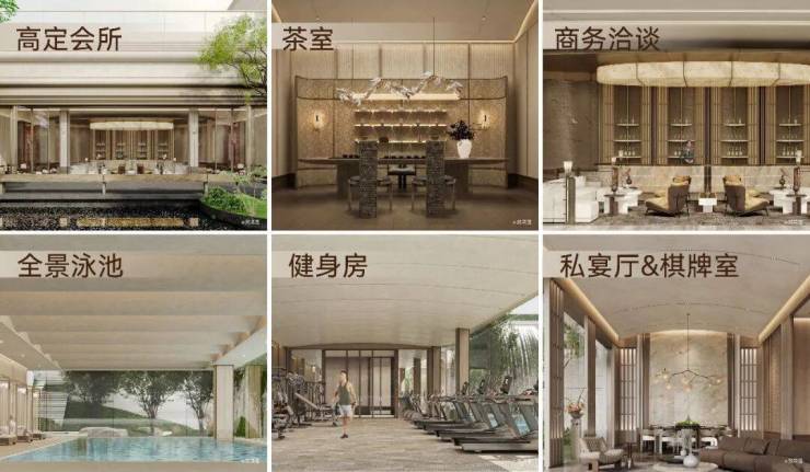 约1300m²下沉式会所:精心升级了八大生活剧场。这里设有温泳池、水吧区、高端私宴区、棋牌室、洽谈区、专业健身房、休闲观景区等高设施,均可面向约1900m²「林溪秀场」庭院景观。