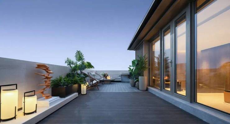 ▶ 上叠冠冕:约50㎡星空露台凌驾城市天际,成就私人空中艺廊;