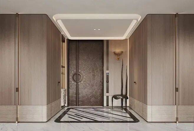 以独栋规制重塑叠加尊严——双入户电梯系统垂直贯穿各户,从社区大堂至私宅门厅,尊荣路径永不交汇,缔造“一院一世界”的绝对领域。