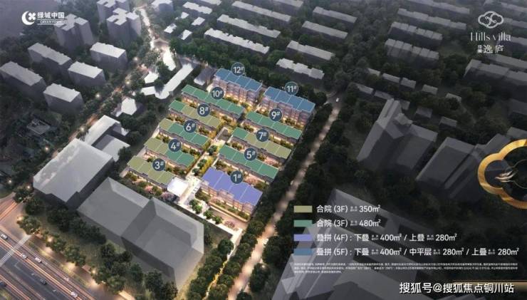 该项目总计63套房源,其中联排35套,叠加28套,上叠、中叠户型建面约280㎡、下叠户型建面约400㎡、合院户型建面约约350-480㎡。