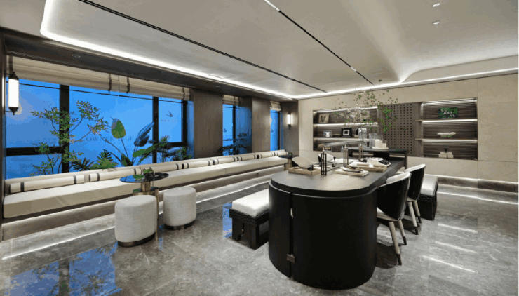 对标宝格丽酒店打造了近3000㎡的会所,配备行政酒廊、红酒雪茄室、棋牌室、私宴厅、健身房、瑜伽室和半国标的无界恒温泳池,满足业主商务、社交、健身、邻里交流和家庭娱乐等多方面需求。