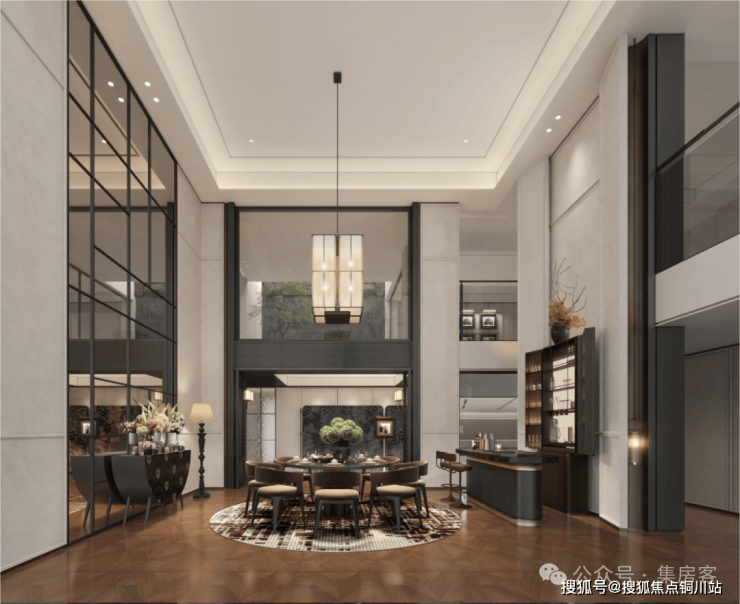 下沉式会所包含约25米恒温泳池、水吧书吧联动区、瑜伽室、童玩空间等全龄功能区;高层架空层采用「景观渗透」设计,开放式布局适配邻里社交与临时休憩场景,实现室内外空间的无界融合。