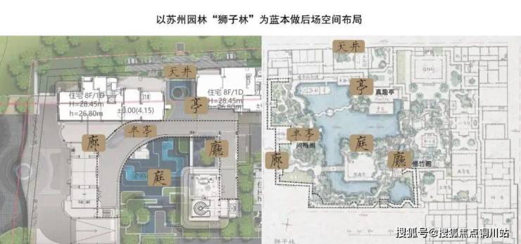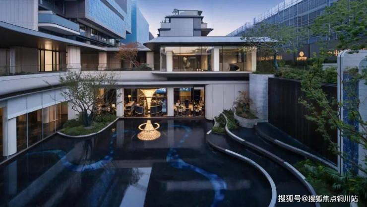 庭——“虽由人作,宛自天开”。以非遗昆曲中的造型水袖串联建筑景观室内联动,形成室内外一体化水韵山水自然庭院。以狮子林布局为骨架,水袖文化为底蕴。中庭水景池底以水袖曲线为索引,以树脂琉璃打造水袖的质感与灵动。