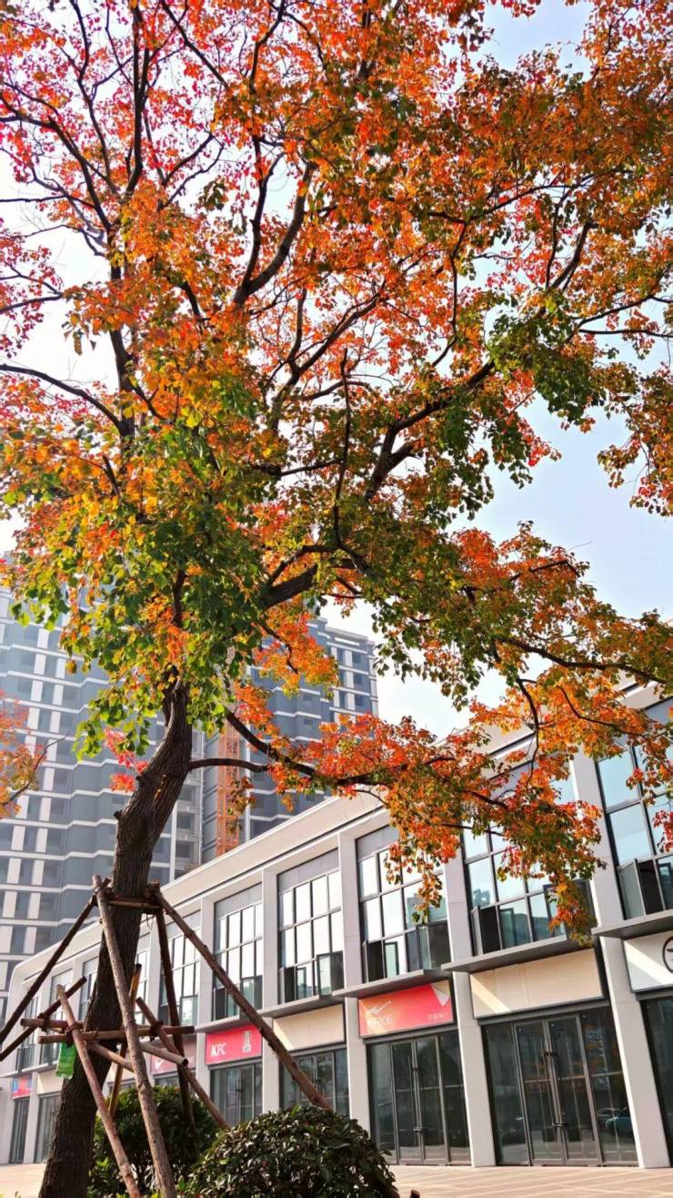 秋,向来悄无声息地抵达,轻得让人几乎无从察觉。等回过神时,身影已落在秋冬的交界处。金悦学府内,乌桕树正肆意铺展着秋的色彩:红的热烈、黄的明亮,红绿黄三色交织在枝头,一半是浓艳的秋韵,一半是初冬的清寂,美得格外动人。