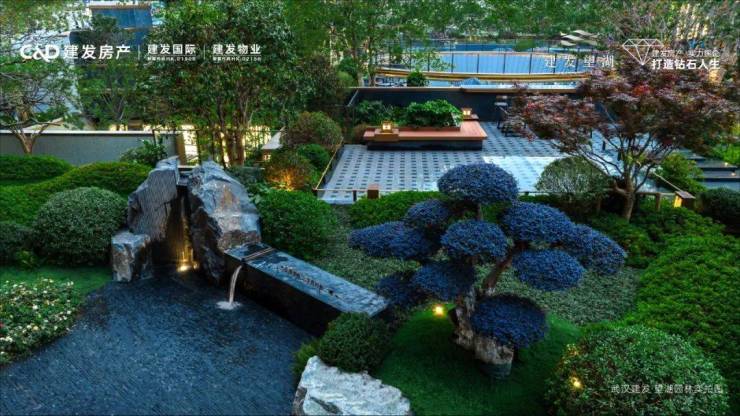 建发·望湖巧妙撷取张若虚《春江花月夜》的幽远意境,深研传世名画《四景山水图·春》的雅致场景,织就“三进五庭四院”的东方美境园林,打造望湖水庭、天井垂瀑、琉璃景池,如梦如幻,引人入胜。