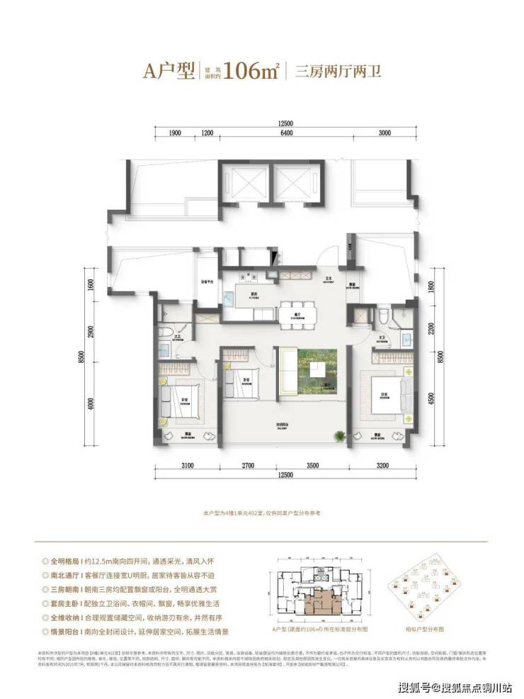 知海棠的户型大放异彩。首开时,当年轻人看到109㎡竟然做成了三房两厅两卫的观景边厅户型,106㎡户型四开间朝南,南向面宽达12.5米,128㎡则是4房大边厅,的确有种两眼放光的感觉。