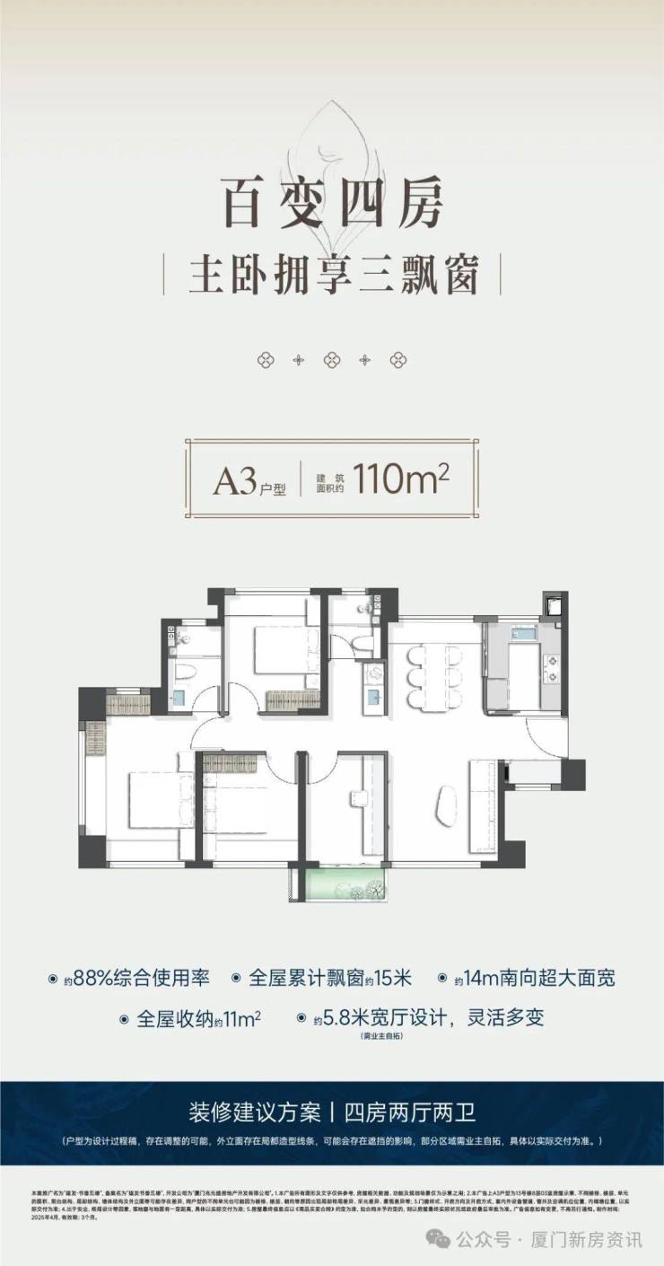 建发书香五缘即将推出179m²四代宅户型空中双花园 超高得房率