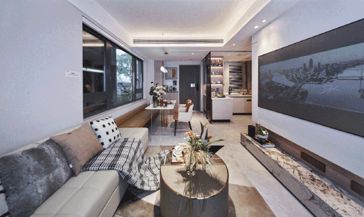 同时,它也没有因为享受生活而忽视现实的使用功能。高标精装+智能模块让小空间也有舒适生活。