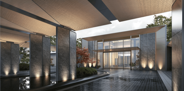 下图是社区大堂效果图,曲径通幽,归家如同度假的开始。