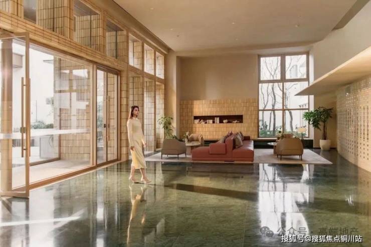 度假酒店式归家中岛体验,洄游动线内外造园,穿厅即入“艺术生物群水上花园”玄关庭院。