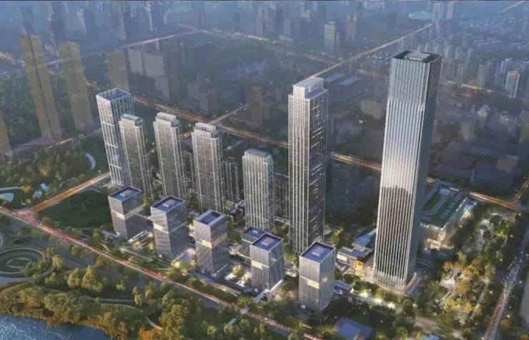 项目分11个地块开发,包含B1地块386.3米超塔、B2地块302.4米塔楼以及7栋住宅楼群。规划采用"垂直城市"设计理念,将功能垂直叠加,形成高效集约的空间布局。