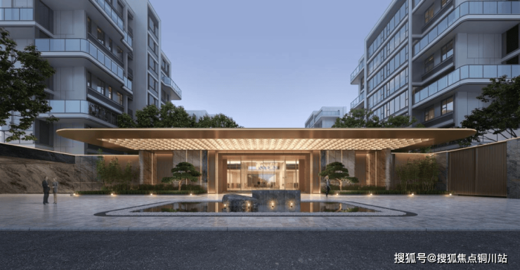 4、极具仪式感的酒店式大门。以大面积奢石、铝板、玻璃打造极具仪式感的城市玄关,将精致、隐奢展现得淋漓尽致。