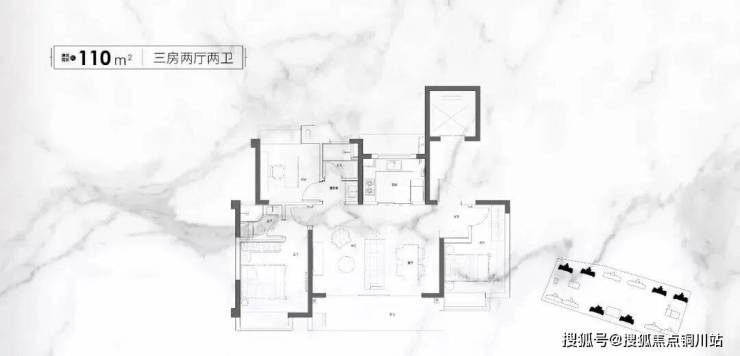 建面约110㎡三房两厅两卫户型,起步即封神。