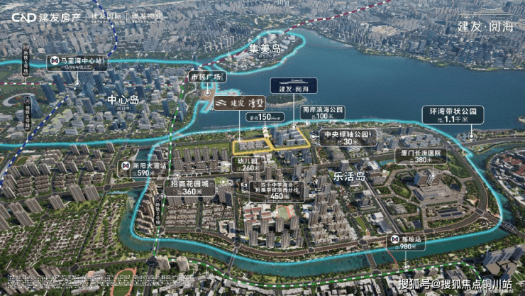 撷取湾海生活灵感,洞察岛居理想,建发·阅海循世界湾区蓝图,立于厦门乐活岛中轴北岸一线瞰海景观位。直线距离一公里范围内,医养、轨道、商业、学校、公园资源集萃:约380米综合性三甲长庚医院,约590米地铁新阳大道站,约360米招商花园城,约450米双十海附庚西学校,约100米南岸滨海公园,成就海洋与人居交织的诗意生活理想。