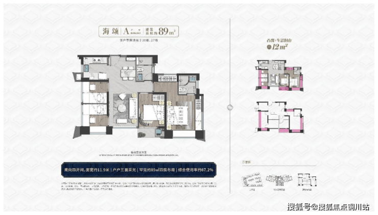 4房2厅2卫综合使用率约87.2%