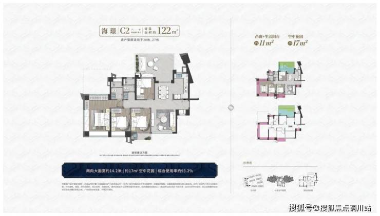 4房2厅2卫1空中花园综合使用率约91-93%