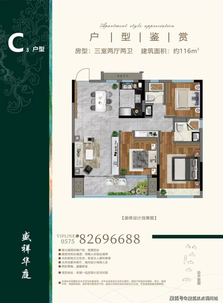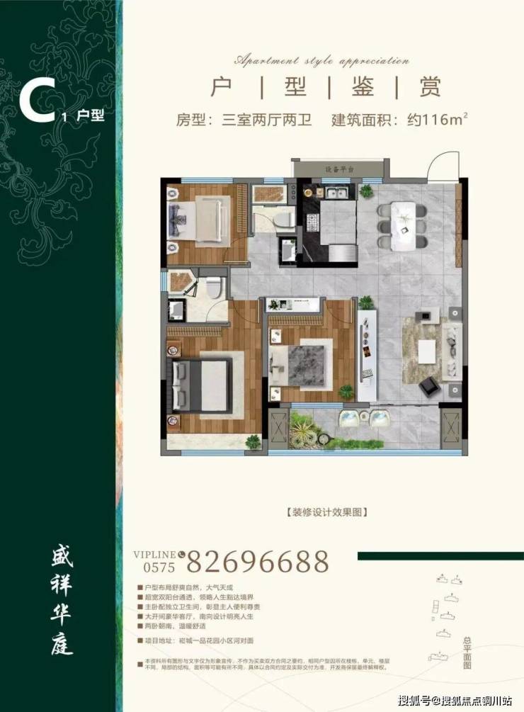 盛祥华庭打造的建面约87㎡-116㎡的小 户型产品, 核心亮点在于“小面积不缺大配置”。