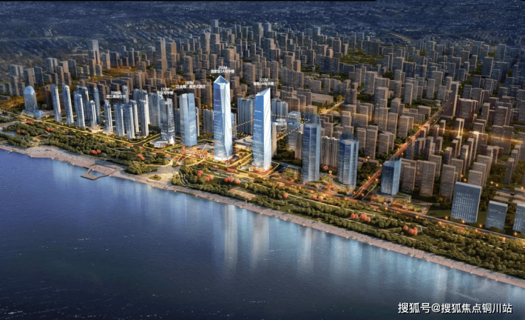 青山滨江商务区启动区项目鸟瞰图