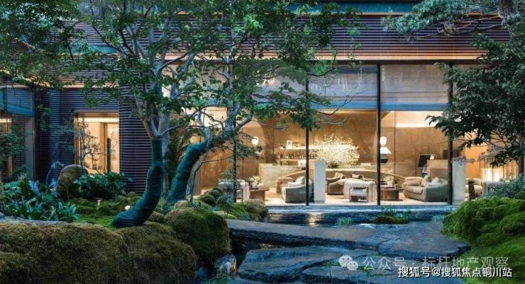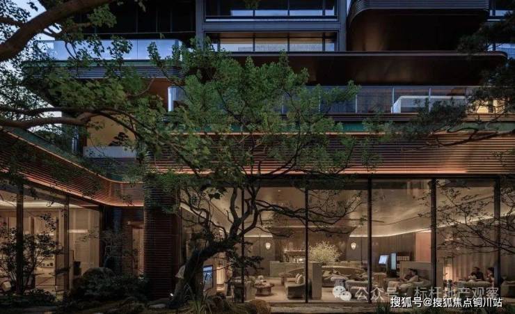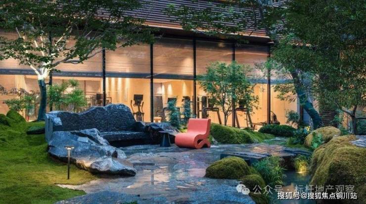 由外及内,从礼仪到日常,从都市风貌至迎宾雅致,匠心打造三重归家礼仪庭院。整体规划以围合式布局为核心,构筑“一心一环三庭五园七景十境”的空间序列。步入下沉式庭院,瀑布如丝如缕,连贯山水、台地、石景、森林与池塘,犹如一幅生动的立体水墨画卷,跃然于眼前。