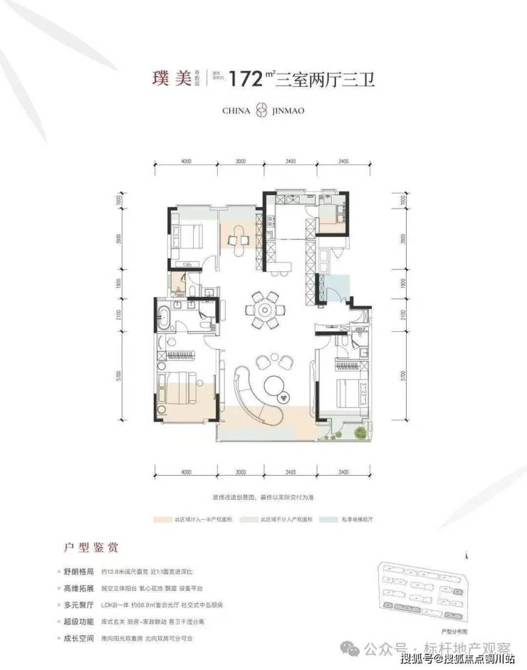 宽敞13.8米尺度面宽,接近1:1的完美面宽与进深比例。立体挑空阳台,配备氧吧花池与飘窗,实用设备平台。LDKB一体化设计,约66.8平方米的复合式光厅,社交型中岛厨房。创新库式玄关,厨房与家政高效联动,客卫实现干湿分离。南向阳光双套房设计,北向双卧室灵活分隔与组合。