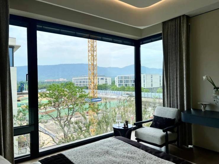 山和月全都是落地窗,躺在床上,也能看山,很绝!