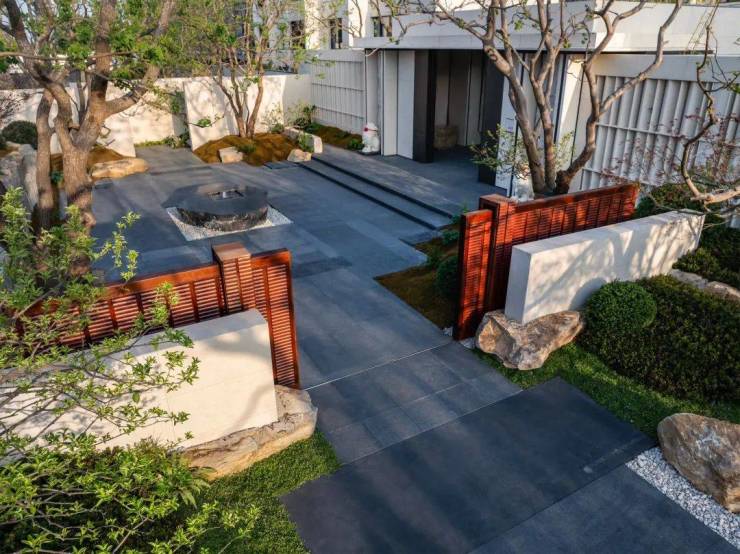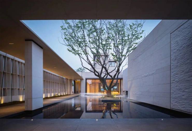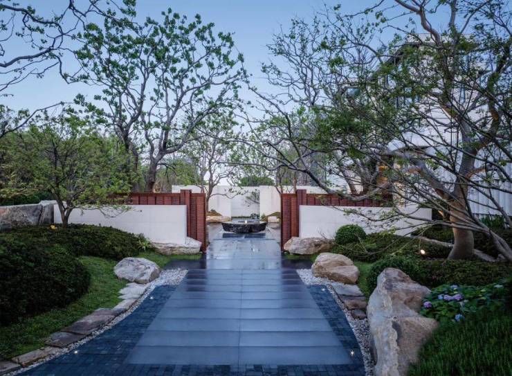 完全跳脱出了现在南京市面上楼盘大门追求的宏大,结合项目区位特色,山和月强调的隐奢