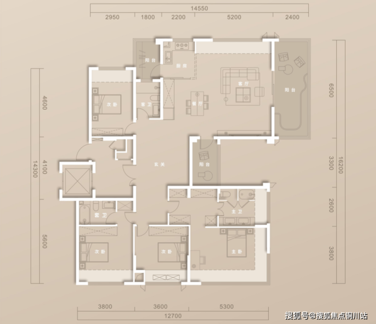 精准把握“四房两厅三卫”格局,