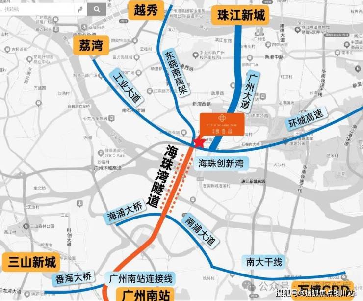 海珠湾隧道口,快速通达广州南站、珠江新城、越秀、荔湾等城芯