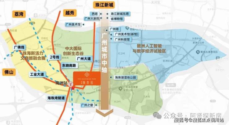 “琶洲数字经济区、文商旅融合圈、中大创新谷”三大产业板块环伺