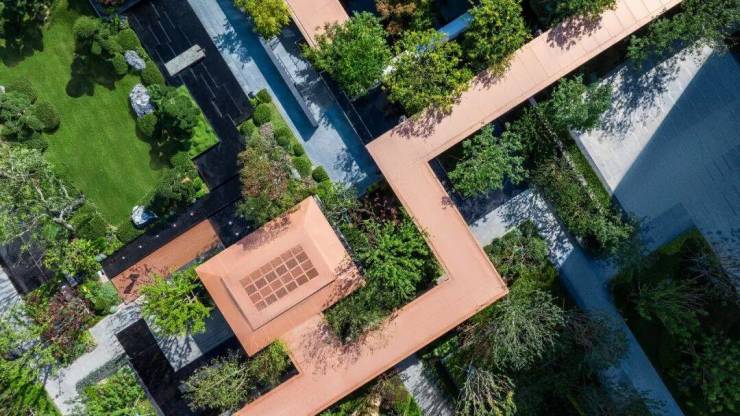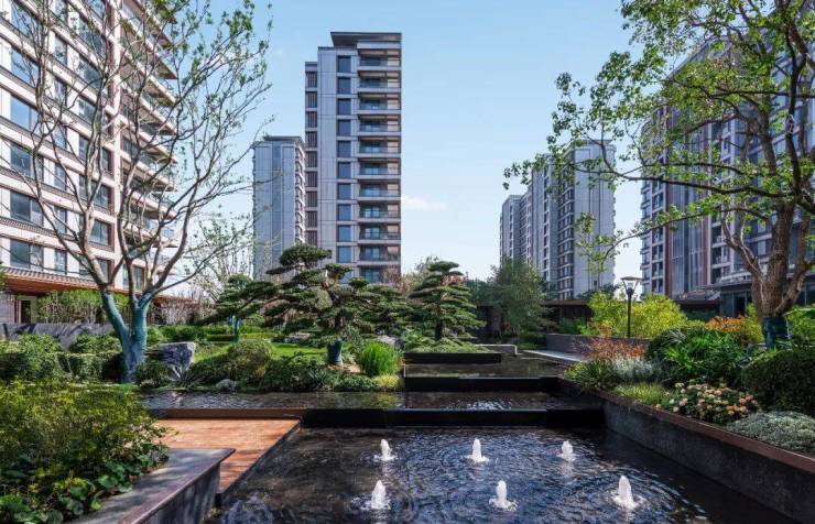 海量成年乔木的融入,中心景观区精心规划,围墙边等不起眼之处,都选择采用乔木+灌木的搭配,而非简单的草坪铺地,让建筑宛若生长于自然间,让业主的每一次归家,都成为一场穿越山水的沉浸式旅程。