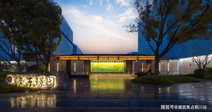 观门而知门第,入门而彰门户。濠东璟园精心雕琢阔境古铜色门头,复刻雕花格栅与门匾,大门两侧保留多棵香樟古树,再现宋式官邸的威仪与内敛。景墙取意《千里江山图》的青绿山水,顶部细节延续古建形制,不动声色彰显卓然品质。