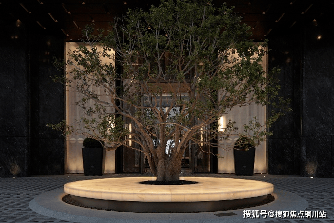 以透光的伊朗进口玉石形成玉树的圆盘底座,如一块巨大的玉璧平安扣,以温暖的光芒庇佑宾客出入平安。