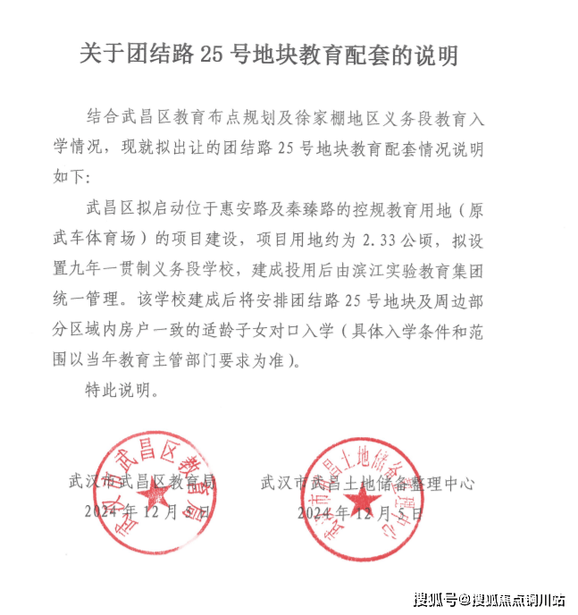 根据项目拿地文件显示,周边将新建一所九年一贯制学校,由滨江实验集团统一管理,该学校建成后将安排团结路25号地块及周边部分区域内房户一致的适龄子女对口入学。