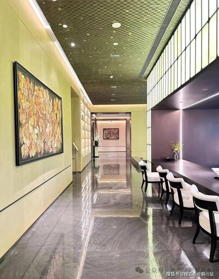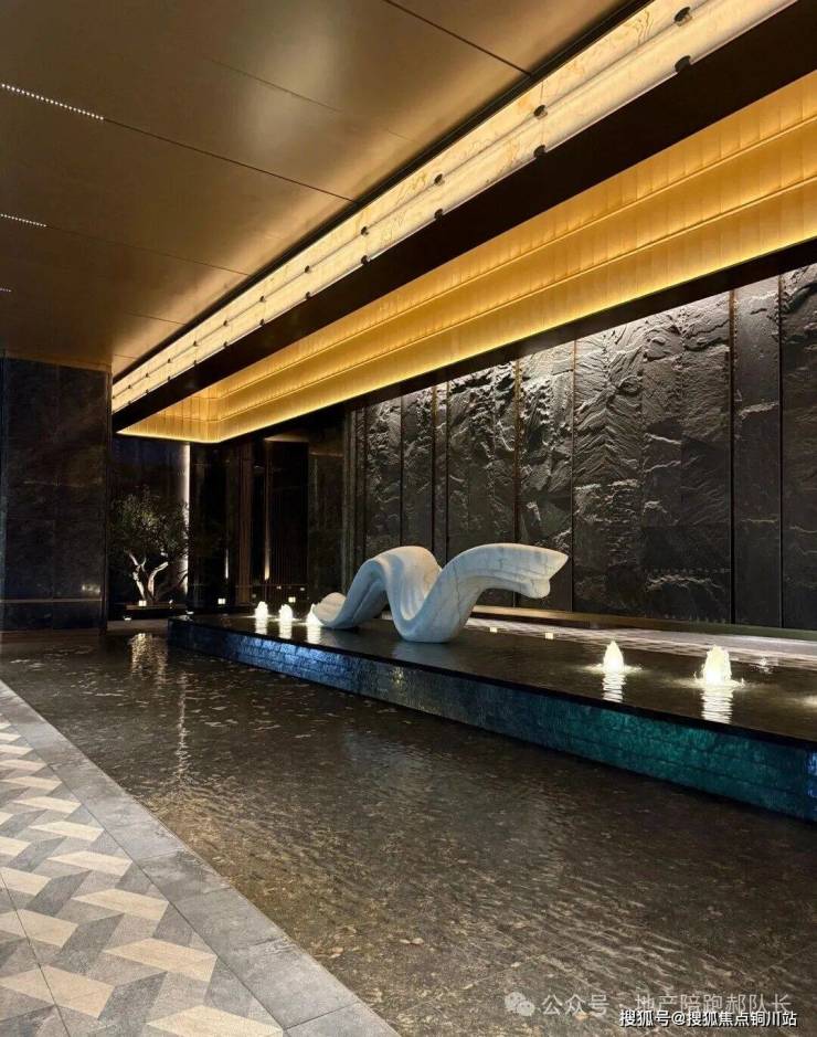 步入门庭,立体山水庭院「知・流霞」如画卷般骤然铺展,依托约3.2米的抬地高差,逐级而上。空中悬浮的「知・印月」浮岛客厅,轻巧地倒影在波光粼粼的潋滟汐庭之中,与前厅交相辉映,营造出光影交织的对话空间,让每一次的相遇都在自然中绽放。