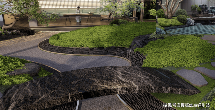 项目还打造了汉阳首个新中式园林,规划了一环三境十二景,归家之旅仿佛漫步在东方画卷,呈现出市面上3万+/平高端豪宅才有的质感。