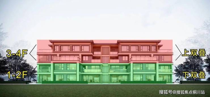 1、建面约195㎡下叠,总高仅4层+大横厅+合院级墅感+全朝南房间