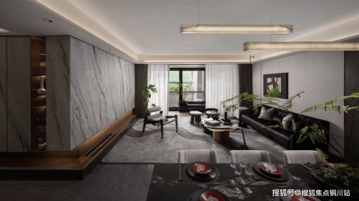 项目立面秉持历久弥新与长期审美的先进性,采用国际东方美学,融合石材的硬朗、金属的质感与玻璃的通透优雅,尽显高级感的国际山居美学。