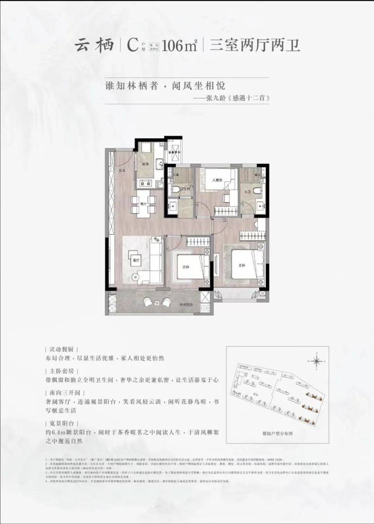 产品面积:小高层98㎡/106㎡ 两梯四户 15层