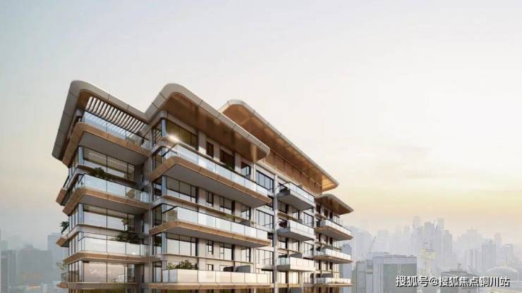建筑通体主要为香槟色,立面以两层为单元进行统一设计,呈现出整体主次分明,挺拔向上的建筑形象。翼板尺度纤细,线条顺滑,出檐深远,质感细腻,立面充满未来感的同时又不失家庭应有的温和元素。