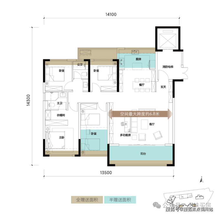 同时这还意味着有专属电梯厅,后期也可以利用起来,室外即可实现鞋柜、储物间“自由”