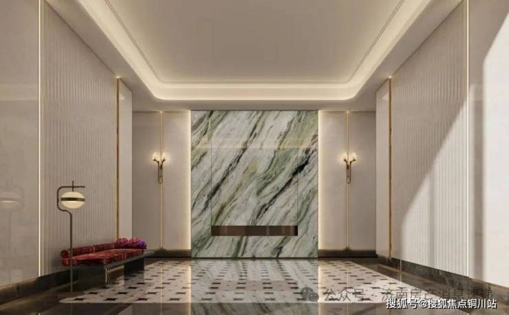 从社区大门进入是社区大堂,映入眼帘的是青玉铺设的地面,高奢、清雅