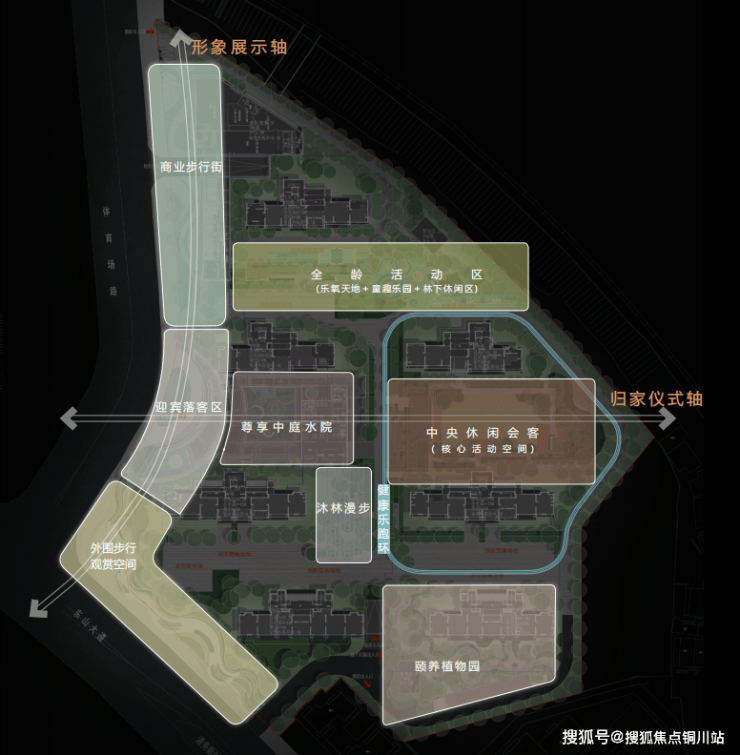 现在已经呈现的迎宾落客区、中庭水院,和建设中的中央休闲会客区,则共同构成了连接东西景观节点的归家仪式轴。
