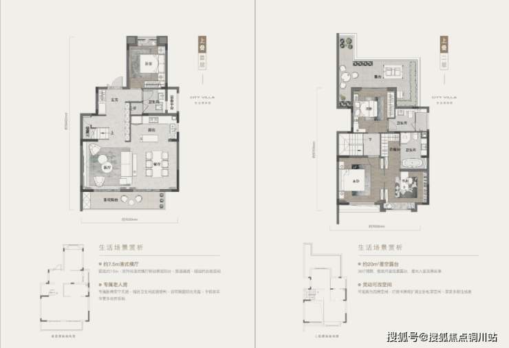 为了观湖视野的更大化,城墅上叠创造性打造了多层露台结构,除了常规的楼顶露台赠送外,上叠二层也有北向露台,两个露台的总赠送面积合计约80平,相当于一套建面约110平米高层的套内面积了!