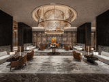 约 70 米巨幅新中式门庭,融合酒店级环岛,绝非浮饰。它摒弃内环传统住宅归家的机械流程,代之以充满东方礼序与尊崇的归家礼仪。这是对 “ 家宅精神原点 ” 的回归,更是对都市精英 “ 归心 ” 渴望的回应。