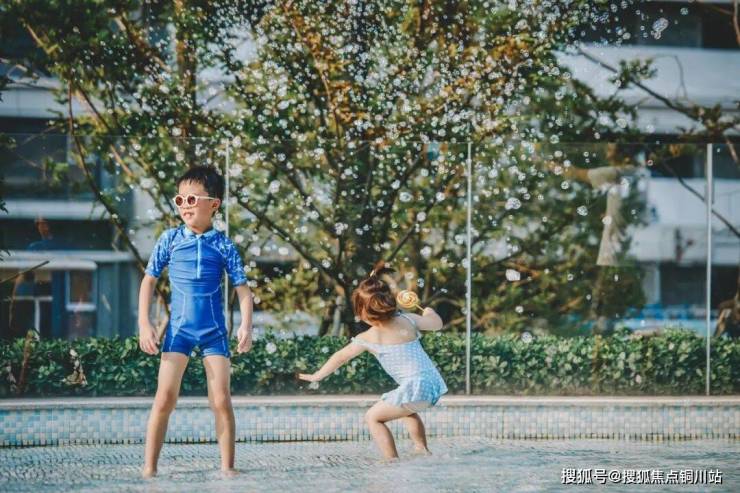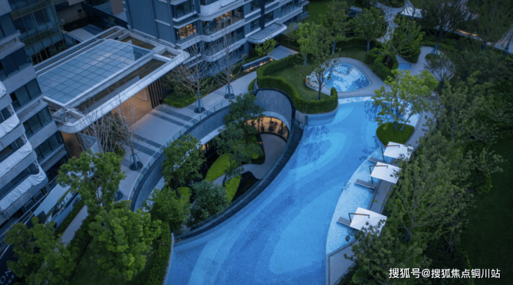 万科洞察人们对于生活松弛感的追求,「日光泳池」嵌入丰茂园林中,绿地与水景相互渗透,将社区里的日常营造成最惬意的假日时光。