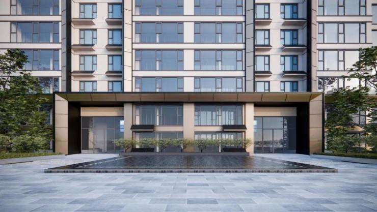 它设有地上、地下双精装大堂。其中,地上社区大堂的大门采用香槟金色的金属与玻璃幕墙,门口设置了12米长的迎宾水景台地景观,其奢华感堪比五星级酒店。